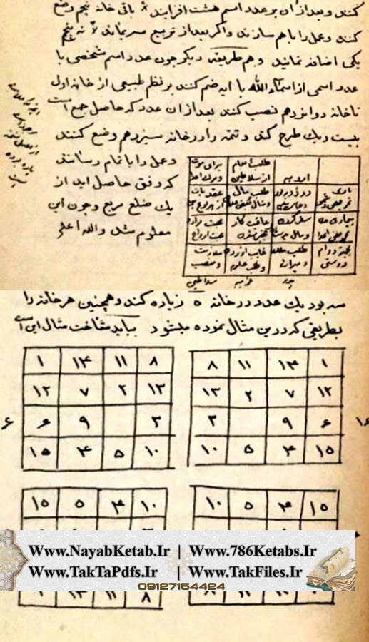 - در بیان تکسیر اسماء الله به وضع هر مربع و مثلث و خواص آنها